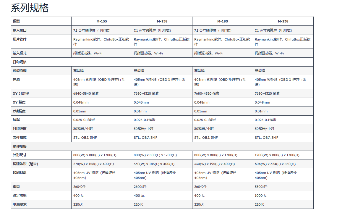 可扩展性:像 M-238 这样的较大型号提供了更大的构建体积,使其适合更大的原型和零件。