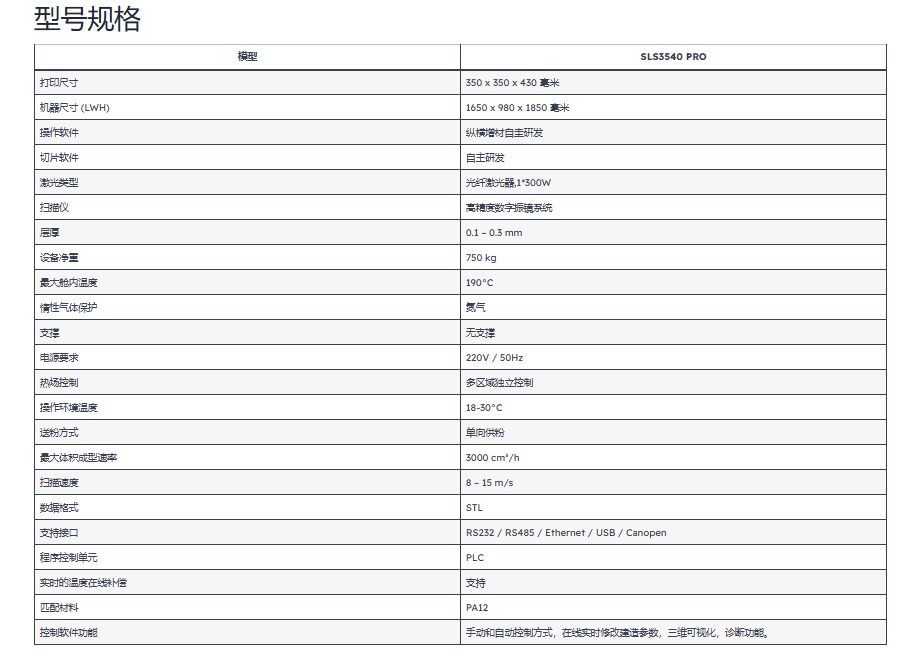 SLS3540 Pro 采用 SLS 技术,利用高功率激光逐层选择性烧结粉末材料,以创建耐用且复杂的 3D 结构。该技术无需支撑结构,可自由设计和打印复杂的几何形状。SLS3540 Pro 提供令人印象深刻的 350 x 400 x 400 毫米构建体积,可一次性生产大型部件或多个小型组件。