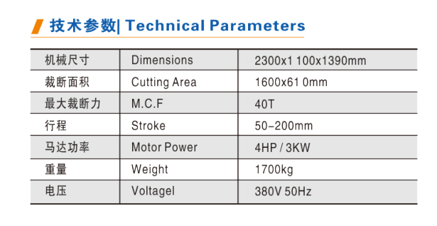 2. Adopted double oil cylinder and precise double-crank connecting rodstructure, which can gurantee the same cutting depth of each cuttingposition.
