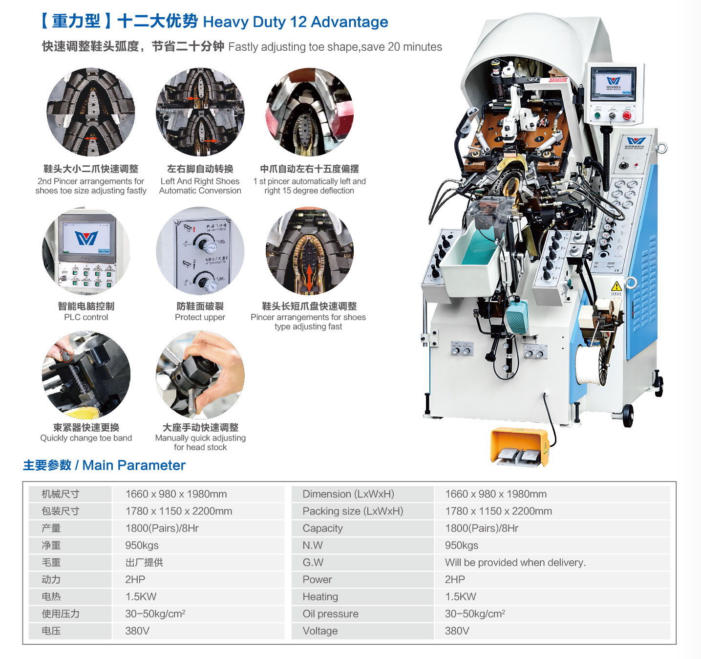 主要研发生产:制鞋整厂设备、加硫热定型机、红外线生产线、制鞋精益生产流水线、鞋厂模块化精益生产线、冷冻定型机、鞋厂流水线、压底机、定型机、制鞋设备、制鞋成型线等产品。