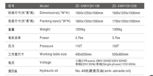本机分110吨,130吨,160吨等压力规格,适用于鞋面,箱包等大面积的压花、冲孔。本机装置保压系统,压力达到设定压力后,电机空转,使电机,油泵得到更好的保护,更加节能。