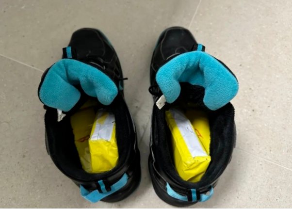 当日15时29分, 一身穿黑色短袖的旅客从青茂口岸旅检现场“无申报通道”进境,现场关员发现该旅客走路姿势异常,遂对其截查。经进一步检查,发现该旅客所穿运动鞋内藏有黄色胶带包裹的CPU160个。