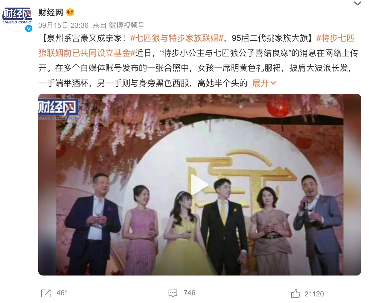 近日,七匹狼和特步两家公司子女联姻的消息冲上微博热搜,引发热议。