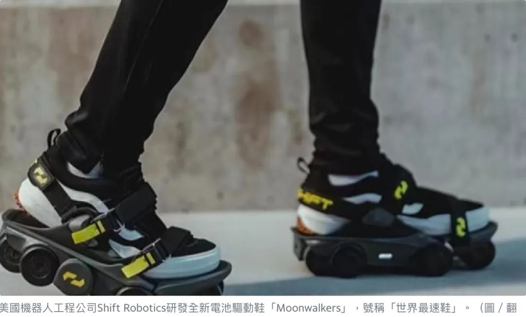 《每日邮报》报导,“Moonwalkers”仿照溜冰鞋设计,装有8个聚氨酯材质轮子,透过最先进的直流马达驱动前进,可把步行速度提升250%,从每小时4.83公里提升至11.27公里,还可用于多种地形,续航里程达9.6公里,充满电仅需1.5小时。