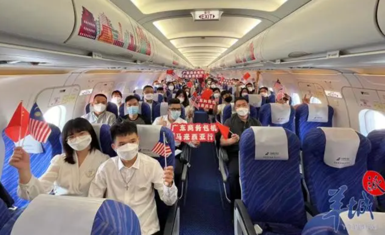 近日,中国南方航空CZ5255航班从广州起飞前往吉隆坡。这是自疫情以来,广东省组织的首架“粤贸全球”商务包机。