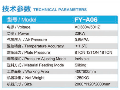 压合系统:三段调压,工作压力设定多样化,气油混合增压,压力稳定:压合时间由数字显示与设定,精确无误,快速冷定型。操作系统:三工位两热一冷,节省空间,提高生产效率;