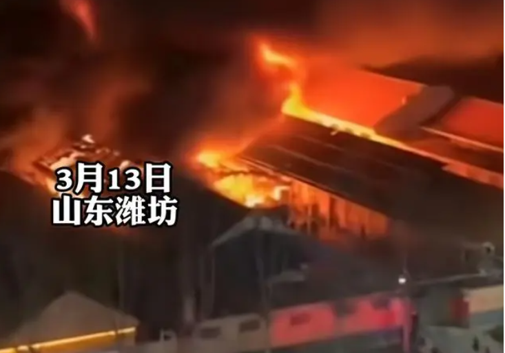 3月13日,山东潍坊高密地区的一家鞋厂,突然发出熊熊烈火。