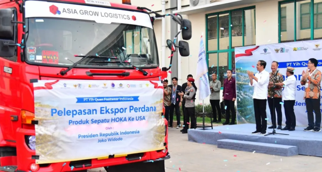 2024 年7月26日,印尼总统(Joko Widodo)在中爪哇省巴塘综合工业区 (KIT) 正式宣布首次向美国出口 1.6 万双 Hoka 品牌鞋。