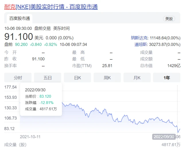 耐克摆烂!市值蒸发190亿美元!打折也卖不动,下半年工厂订单更少了