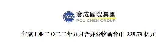 累计2022年1月至9月自结合并营收为2045.78亿元,则较2021年同期营收1814.26 亿元增加12.8%。宝成工业持股51.11%之重要子公司裕元工业(集团)有限公司「裕元工业」2022年9月自结营收为美金7.44亿元(折合约新台币 228.15亿元),较2021年同期增加37.4%,其中制鞋业务较 2021 年同期大幅增长95.3%。